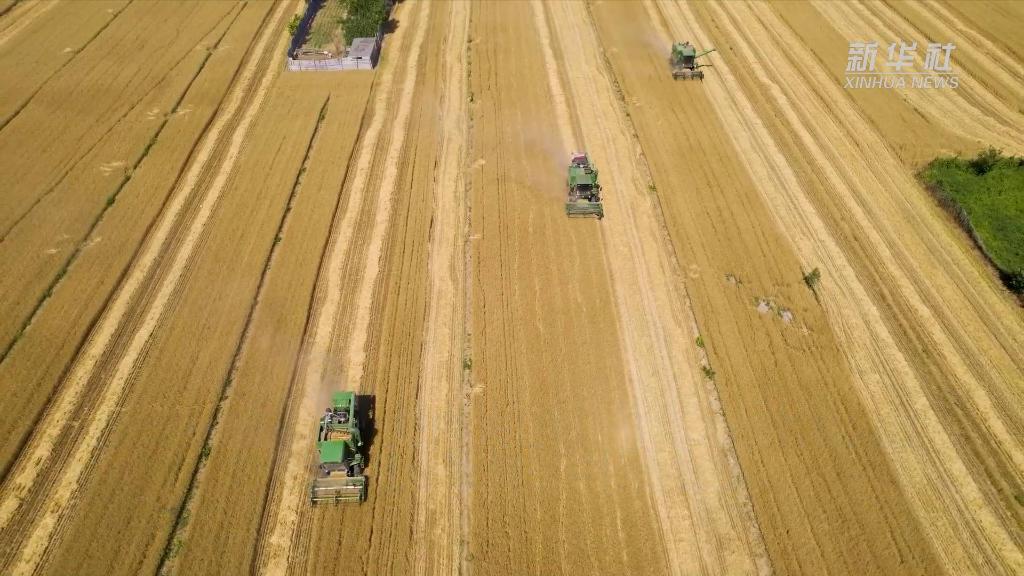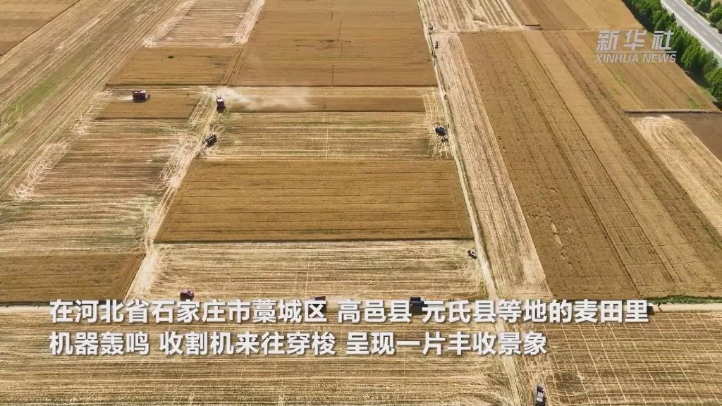 在河北省石家庄市藁城区、高邑县、元氏县等地的麦田里,机器轰鸣,收割机来往穿梭,呈现一片丰收景象。当前,石家庄市431.6万亩小麦已自南向北大面积开镰。