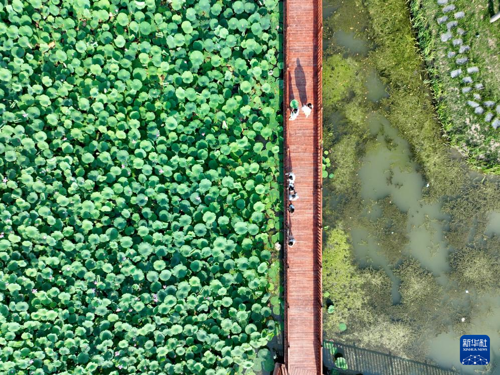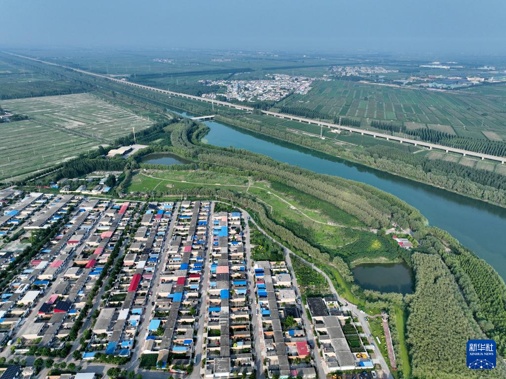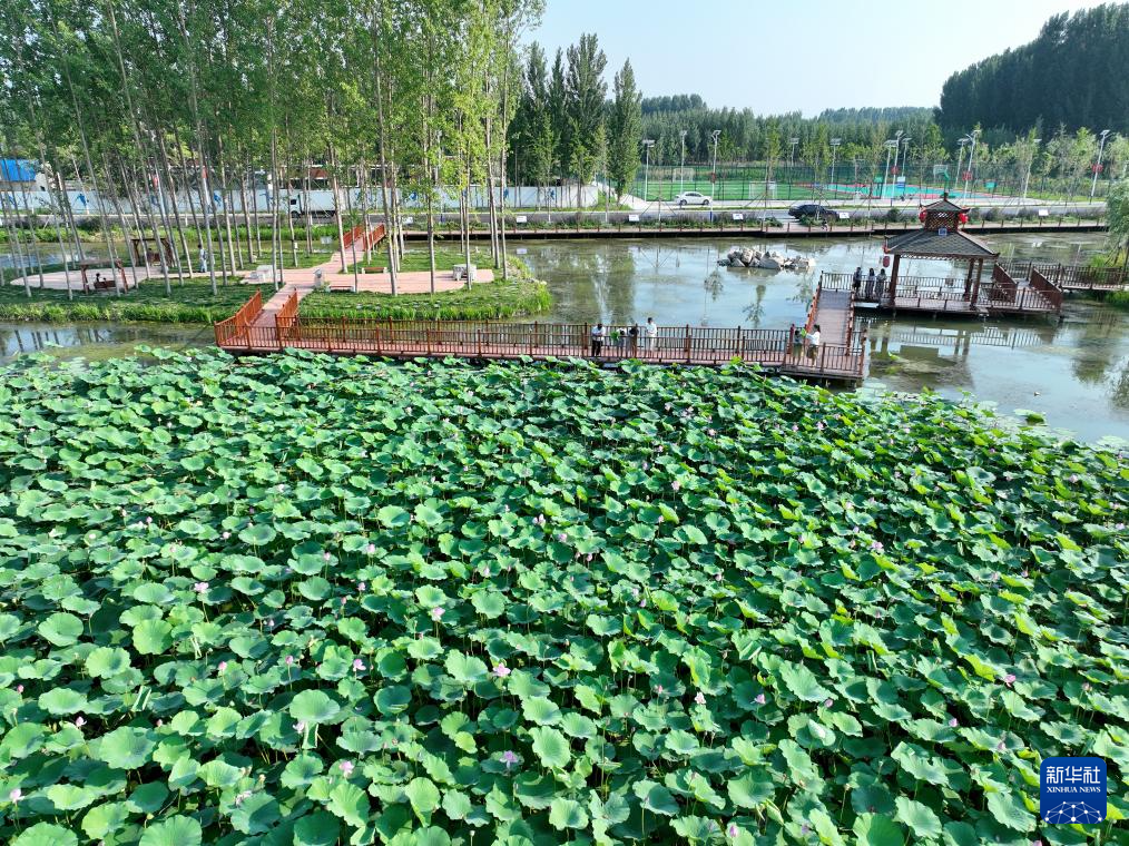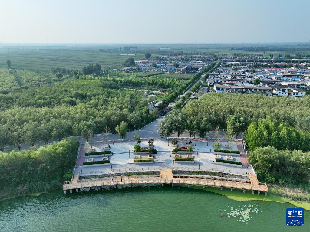 河北省唐山市丰南区王打刁村一处临水游园(7月19日摄,无人机照片)。