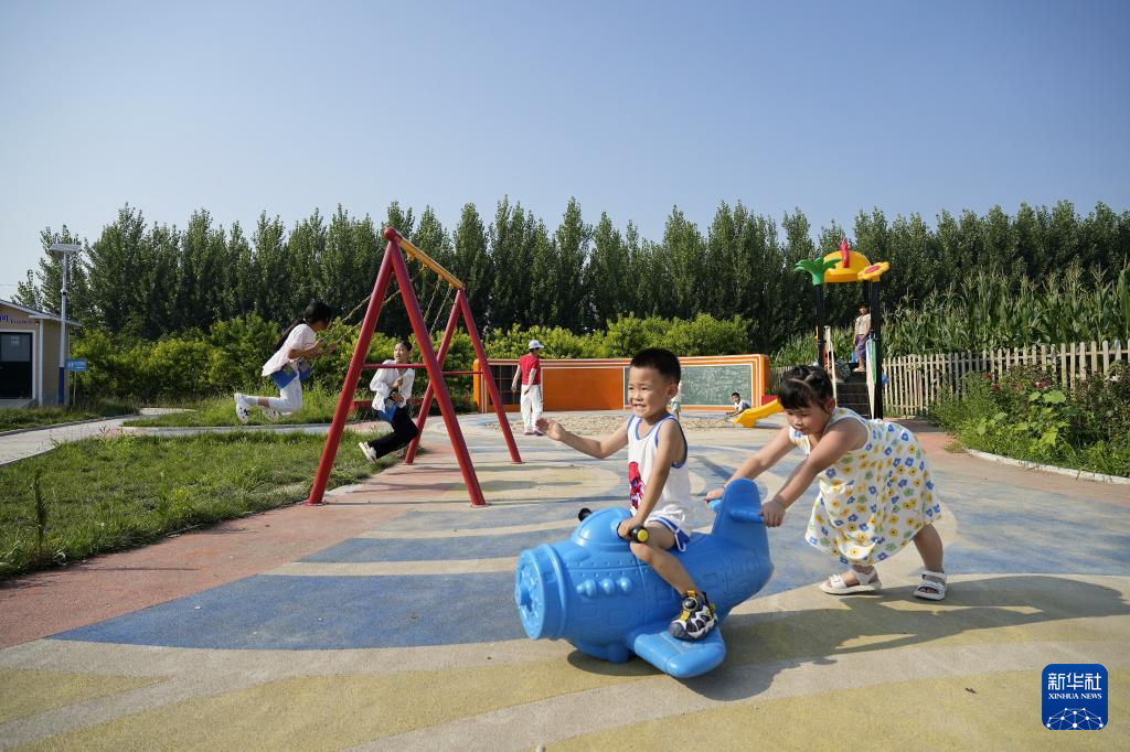 7月19日,孩子们在河北省唐山市丰南区赵新庄村一处游园内玩耍。