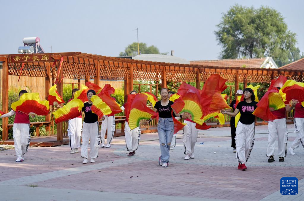 7月19日,村民们在河北省唐山市丰南区赵新庄村一处游园内跳舞。