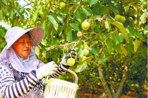 果农正在采摘核桃。