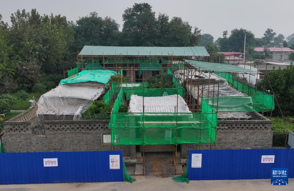 8月29日拍摄的维修中的李大钊故居(无人机照片)。
