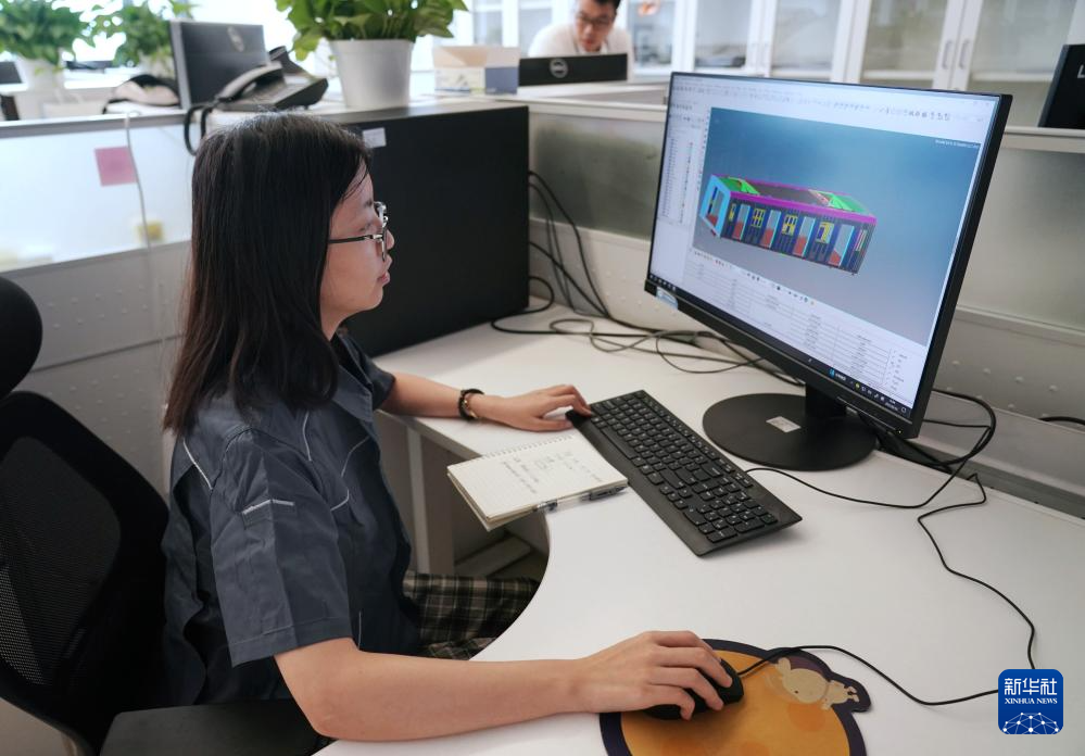 8月10日,京投装备技术研究院的工程师在研究地铁列车设计方案。