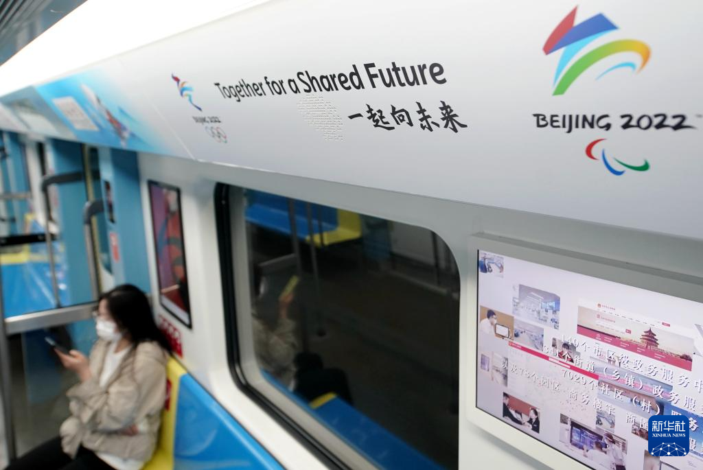 9月13日,乘客乘坐有冬奥元素装饰的北京地铁11号线(冬奥支线)出行。