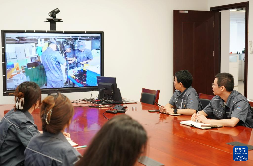 8月10日,京投装备技术研究院的工程师视频连线河北京车智能制造基地查看地铁列车建造现场。