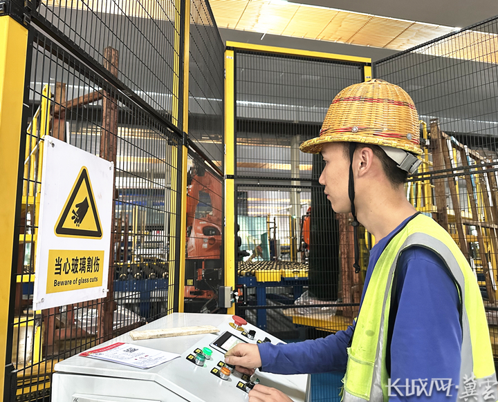 工人通过仪器控制玻璃机械抓手的速度。长城网·冀云客户端记者 魏亚慧 摄