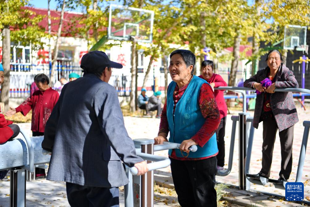 10月14日,居住在河北省康保县土城子镇互助幸福院的老人们在院子里休闲。