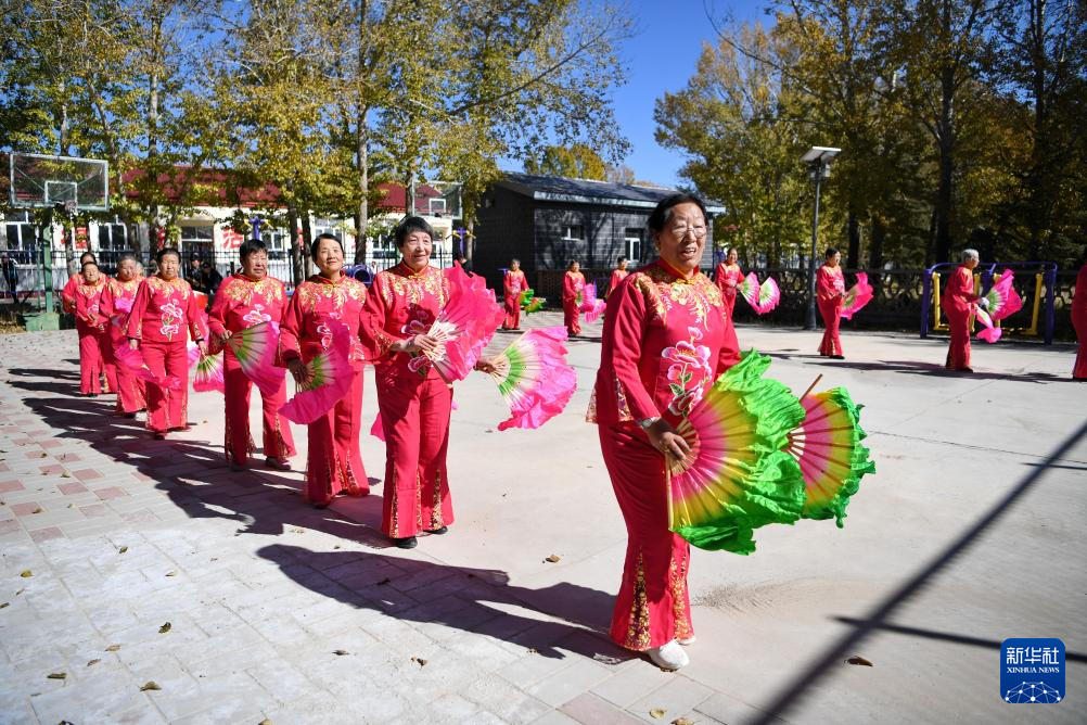 10月14日,老人们在河北省康保县土城子镇互助幸福院内跳舞。