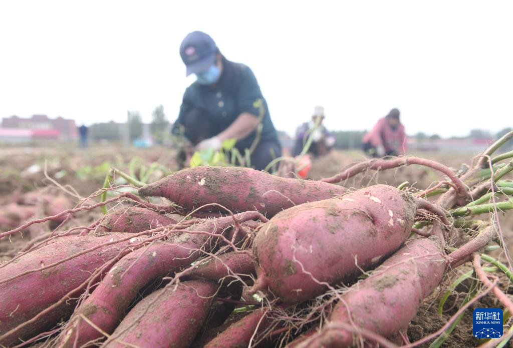 10月18日,河北省石家庄新乐市协神乡北青同村农民在收红薯种薯。