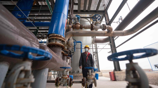 10月19日,沧州临港金诚化工有限责任公司工作人员对氢气供应管网进行日常巡检。