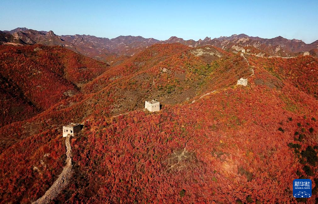 深秋时节,河北省秦皇岛市海港区境内的长城景区层林尽染、色彩斑斓,景色美如画卷。