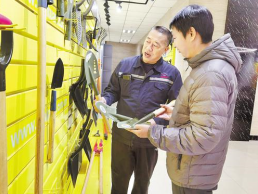 说起开发新产品的缘由,刘玉全直言:“客户给出的点子。”今年初,在带一位老客户参观新产品时,客户的一句话触动了刘玉全,“你这新产品‘换汤不换药’啊,现在好多人买锹是为了户外旅游,而不是干农活儿。”
