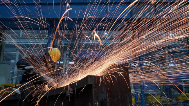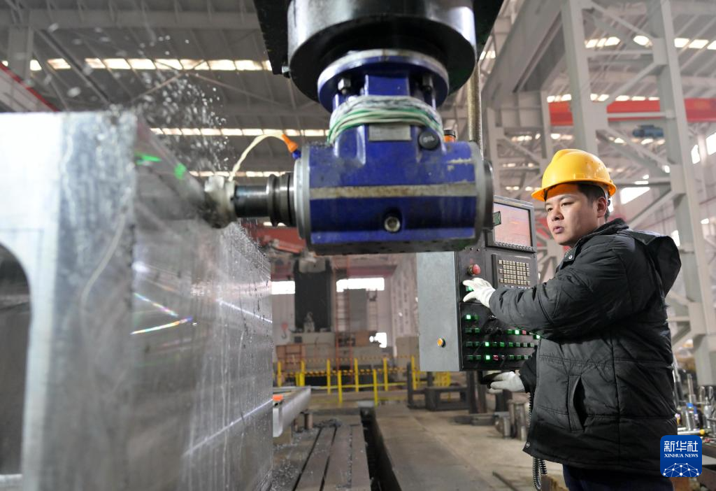 12月30日,工人在唐山市曹妃甸区一家装备制造企业车间工作。