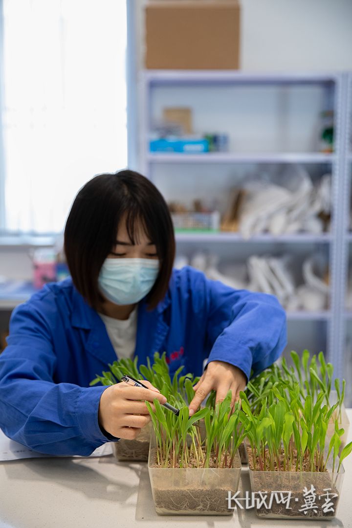 河北大禹种业有限公司内,科研人员正在查看种苗长势情况。记者 白亚军 摄