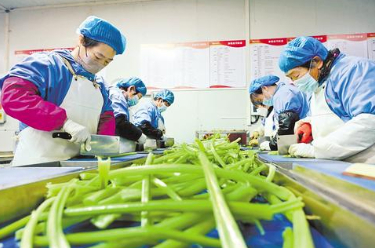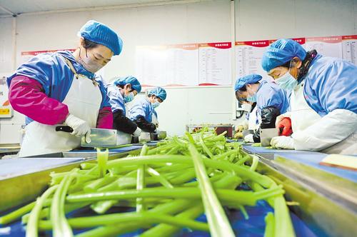 2月7日,在深州市河北农速源冷链物流有限公司的净菜加工车间里,工人正在按照客户需求切分西芹。河北日报记者 焦磊 摄