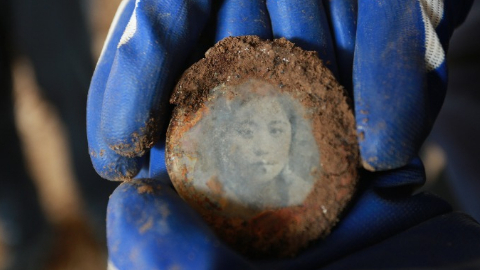 新华社石家庄4月12日电(记者王民、冯维健)记者从河北省肃宁县退役军人事务局获悉,4月10日,在肃宁县雪村战斗烈士墓迁移现场,工作人员发现,第31号烈士遗骸两只手抱在胸前,手中紧握一枚小圆镜,小圆镜内夹有一张照片,虽深埋82年,但上面年轻女性清秀的面容仍清晰可辨。