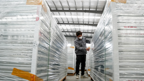 工人在清点洁净板成品。通讯员 张玲玲 摄