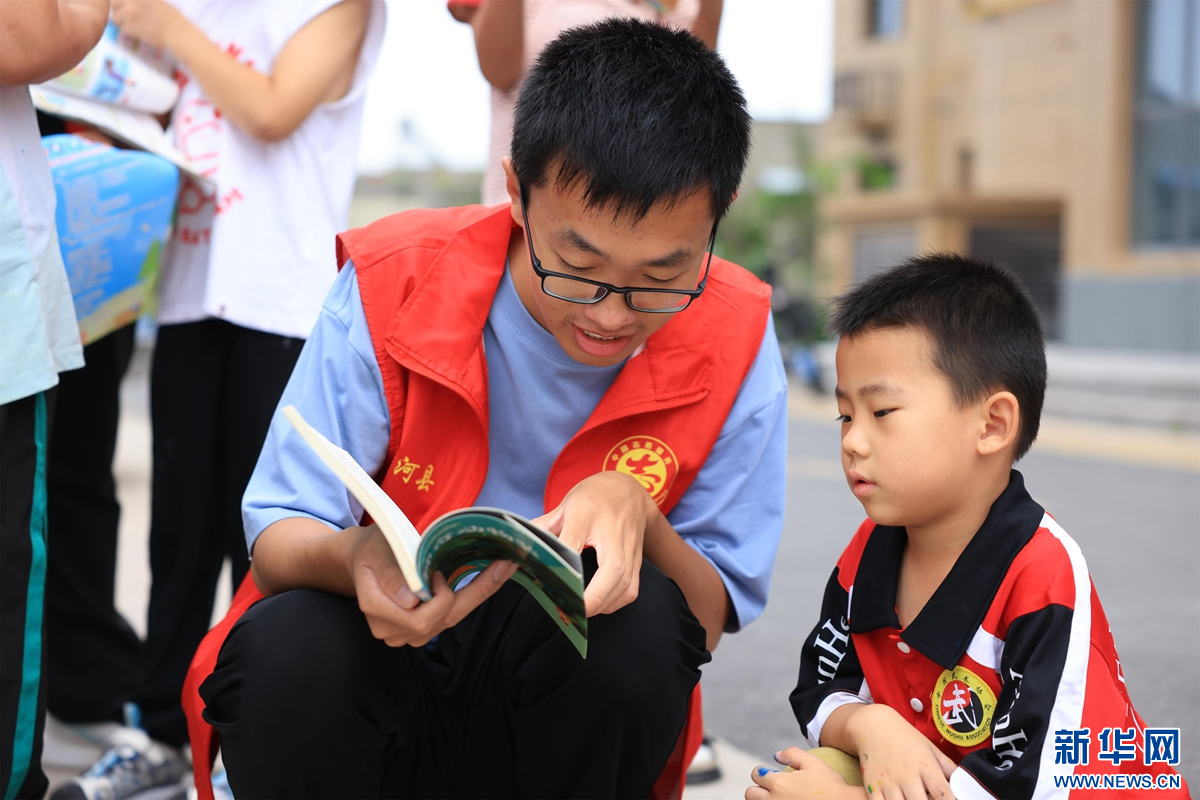 大学生志愿者给儿童讲故事。新华网发 李世强 摄