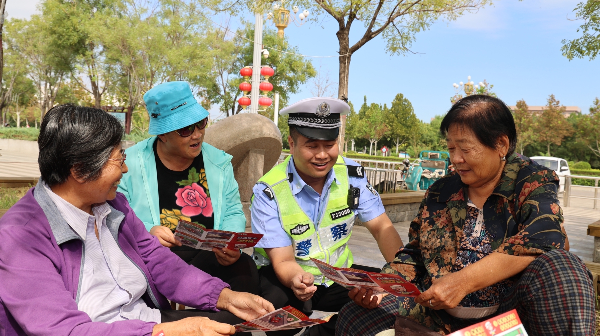 中秋节前夕,河北省新河县公安局交警大队民警深入社区、学校等地,开展交通安全宣传活动,引导群众提高交通安全意识,遵守交通法律法规,文明出行,平安过节。(李世强)