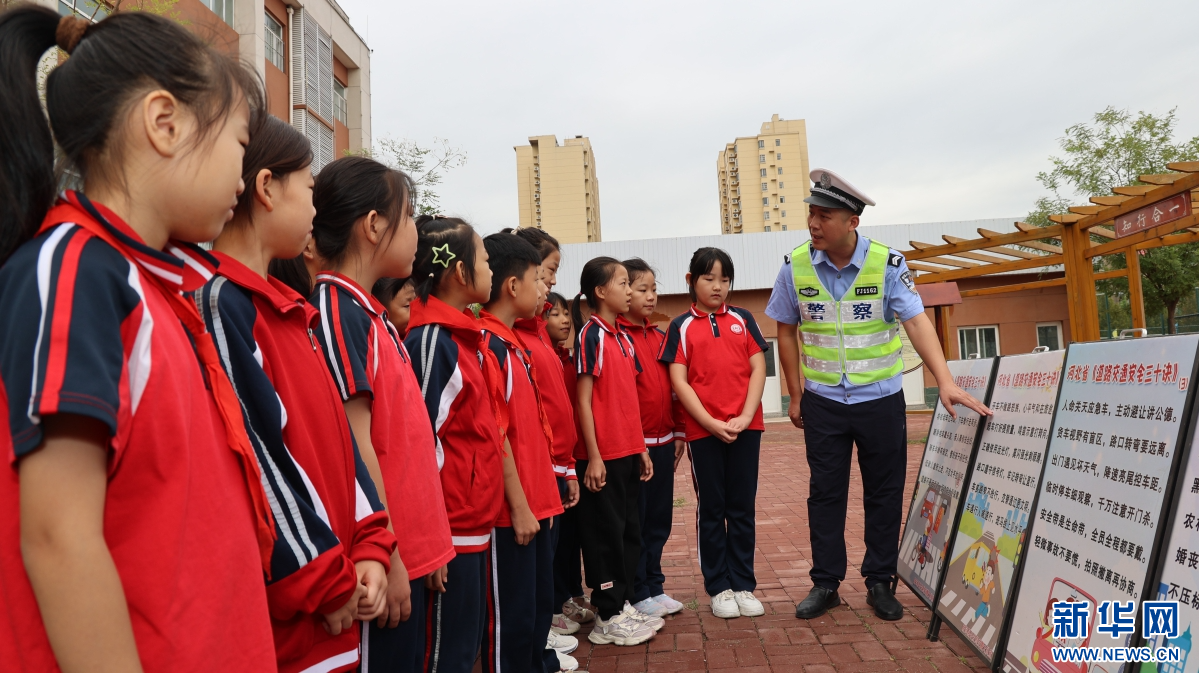 民警为学生讲解交通安全知识。新华网发 刘莹 摄