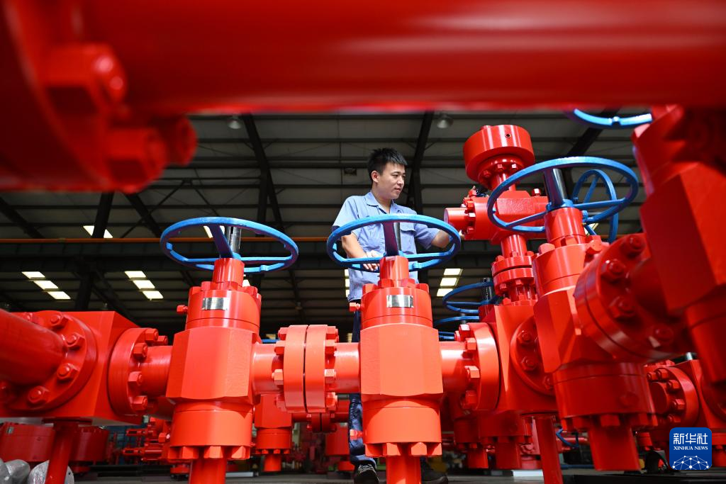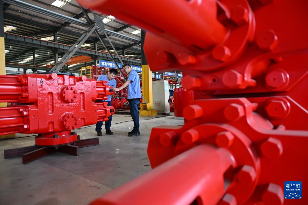 9月13日,工人在位于任丘市的河北新铁虎石油机械有限公司车间内调试产品。
