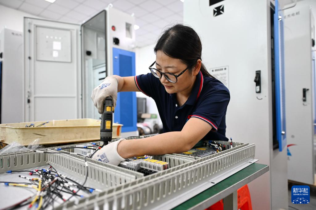 9月13日,工人在位于任丘市的瑞安达光电科技有限公司组装电动汽车直流智能充电桩。