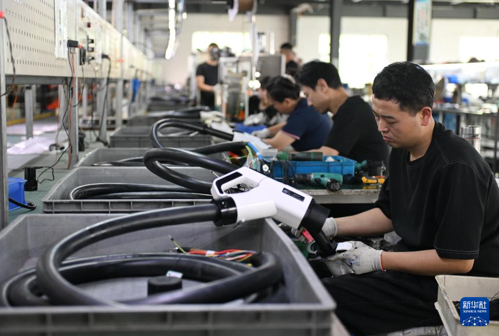 9月13日,工人在位于任丘市的瑞安达光电科技有限公司组装电动汽车充电枪。