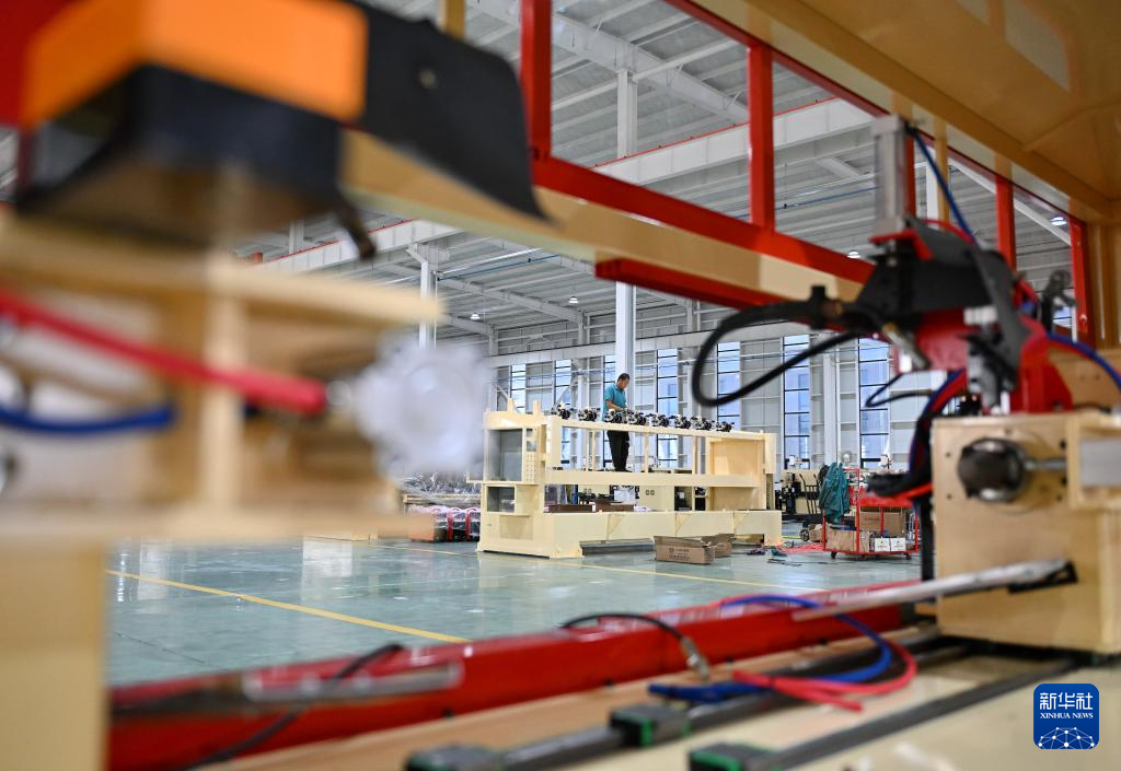 9月13日,工人在位于任丘市的金狮智能机器人有限公司生产车间内工作。