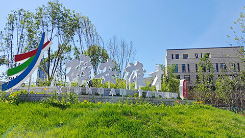 近日拍摄的雄安新区雄才大厦附近街头公园。记者 曹铮摄