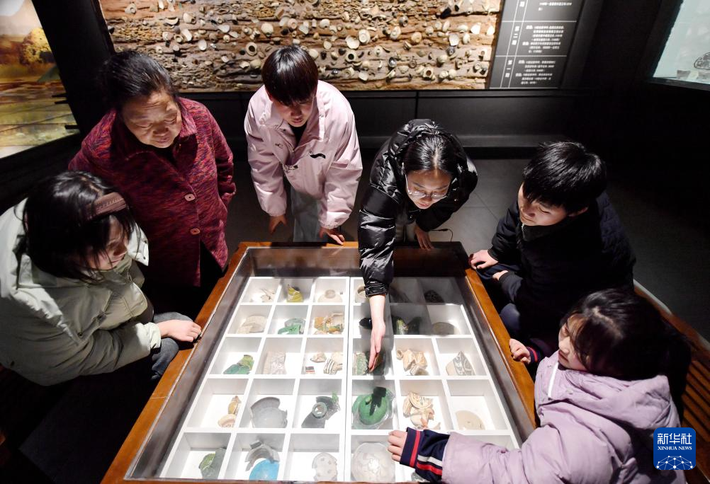 3月2日,陈玉文(左二)带领孩子们在磁县中国磁州窑博物馆参观。