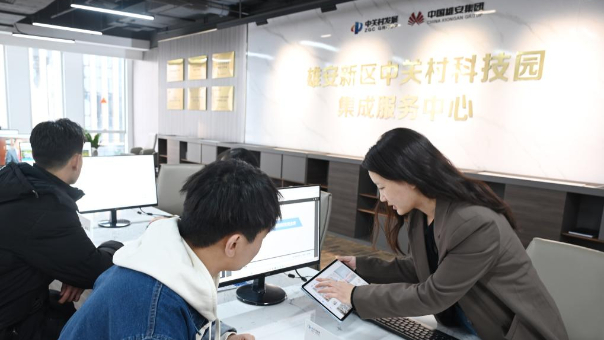 在这个“村”,设有集成服务中心,许可证打印、营业执照打印等多项业务都可以在这里高效办理。园区还提供了“多对一”服务体系——一名招商人员、一名产业服务人员、一名物业服务人员协同对接企业需求。雄安时代凌宇科技有限公司负责人谭嘉麒对此深有体会:“园区工作人员会主动协助对接符合我们的政策,让我们能轻装上阵。”