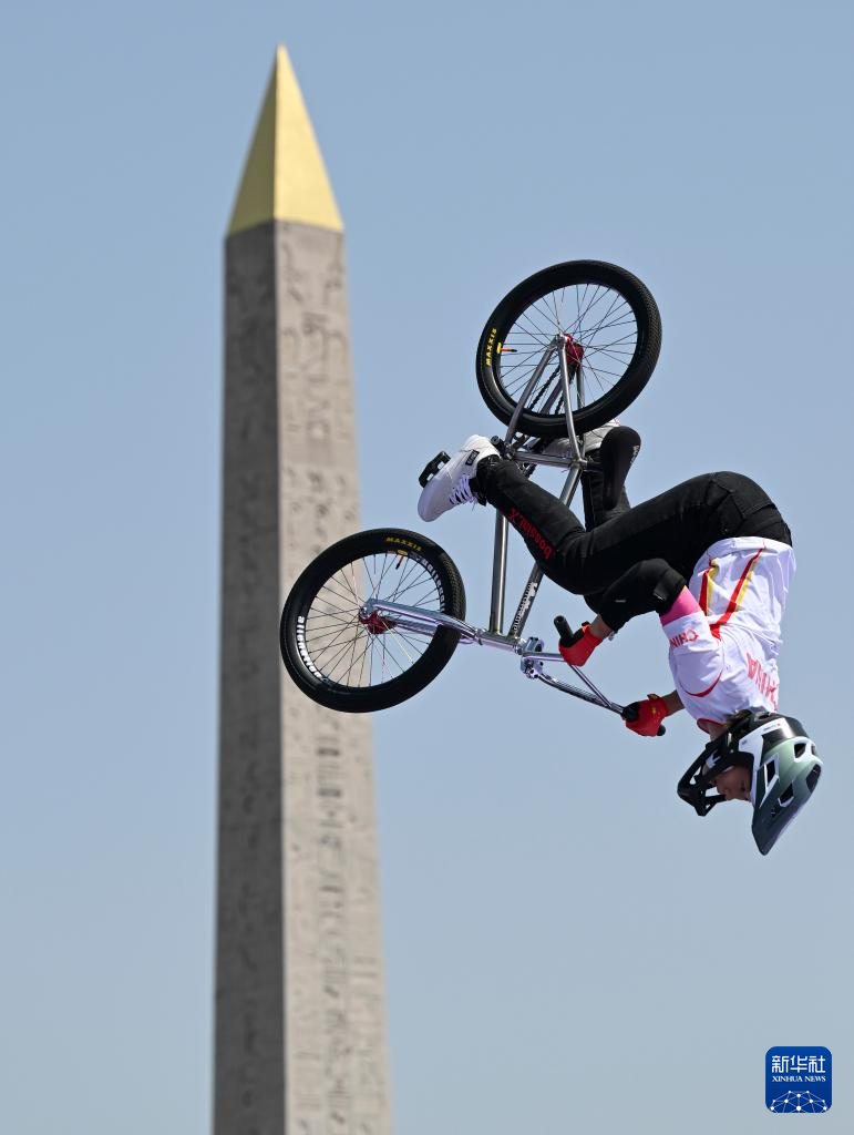 2024年7月30日,中国选手孙佳琪在巴黎奥运会自由式小轮车预赛中。新华社记者 胡虎虎 摄