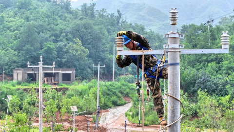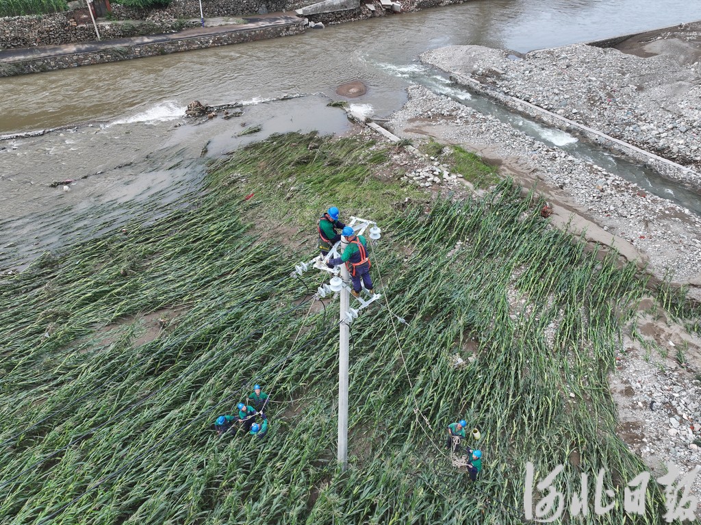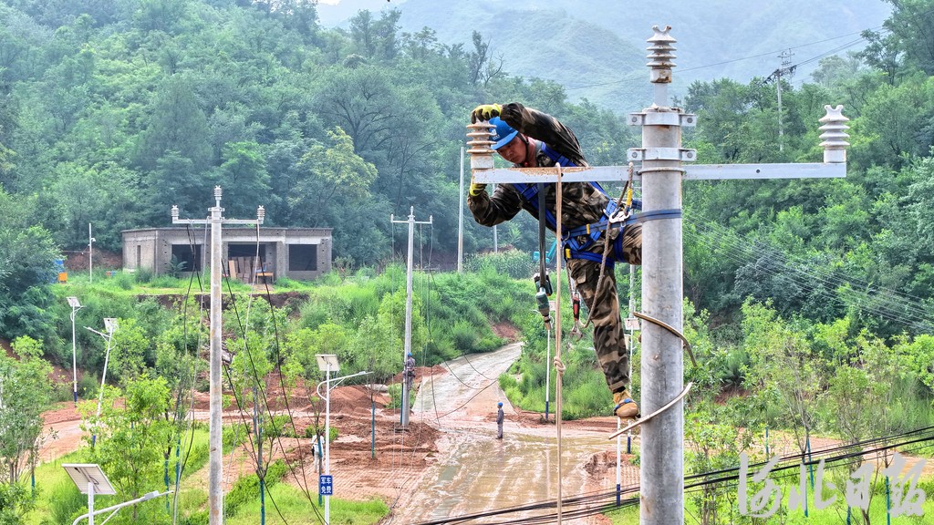 7月28日,电力抢险救援队在滦平县马营子满族乡抢修供电设施。