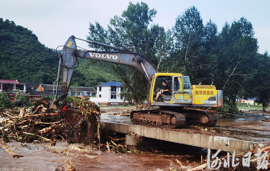 7月28日,抢险人员在滦平县马营子满族乡南大庙村清理河道。
