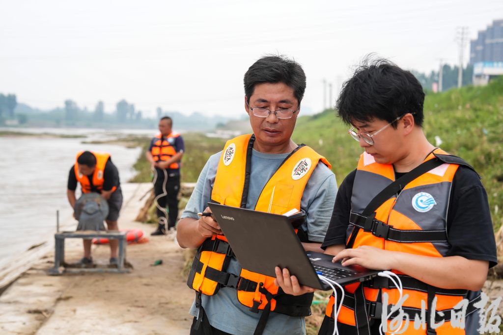 7月27日,保定水文勘测研究中心工作人员在北易水河易县易黄水文站监测流量。