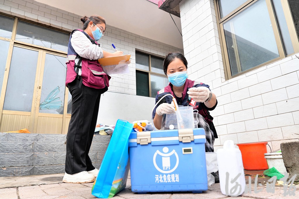 7月27日,阜平县疾病预防控制中心工作人员在双庙村村民家中检测水质。