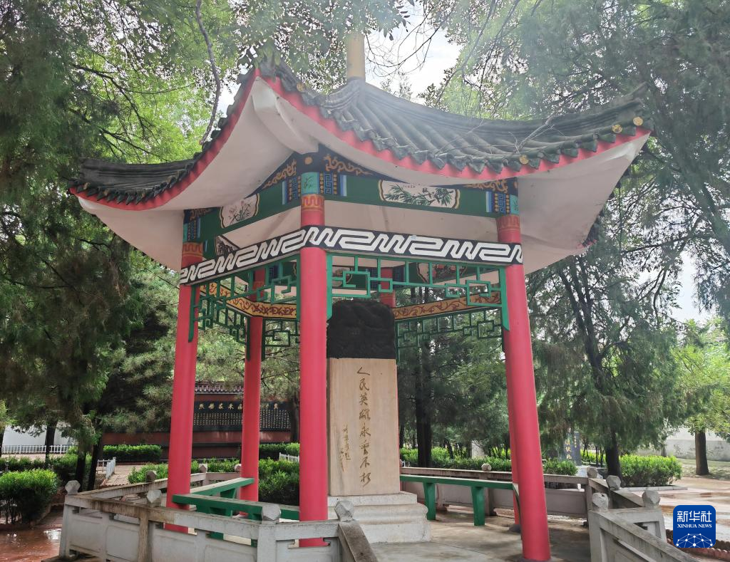 刘秉彦题写的米家务陵园烈士纪念碑。新华社记者 田策 摄