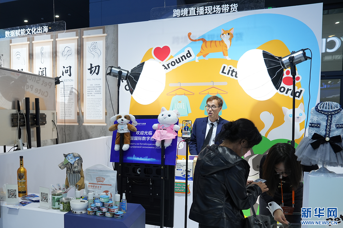数博会上,主播进行跨境直播带货。毛鹤然 摄