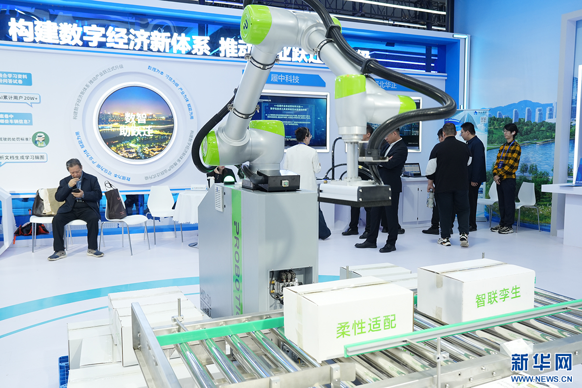 数博会上,工业机器人执行作业任务。毛鹤然 摄