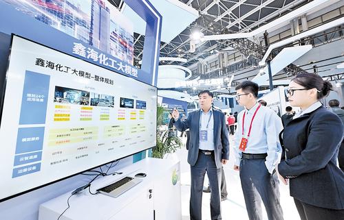 在数字产业生态馆的绿色化工展区,鑫海化工大模型吸引了众多与会者驻足。