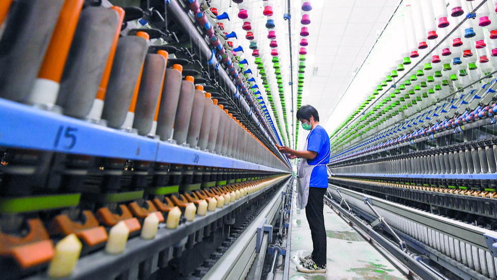 晋州市纺纱织造产业集群是河北省107个省级重点县域特色产业集群之一。图为位于河北晋州经济开发区的河北佰斯特纺织有限公司生产车间,工人进行纺纱作业。记者 张晓峰 摄
