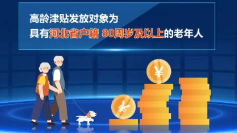 通知规定,高龄津贴发放对象为具有河北省户籍、80周岁及以上的老年人;经济困难老年人养老服务补贴发放对象为具有河北省户籍、纳入最低生活保障范围的60周岁及以上老年人;经济困难失能老年人护理补贴发放对象为具有河北省户籍、纳入最低生活保障范围、60周岁及以上且经认定达到中度及以上失能等级的老年人。三项补贴的具体标准由各市、县(市、区)人民政府根据本地经济社会发展水平、财政承受能力等情况科学合理确定。