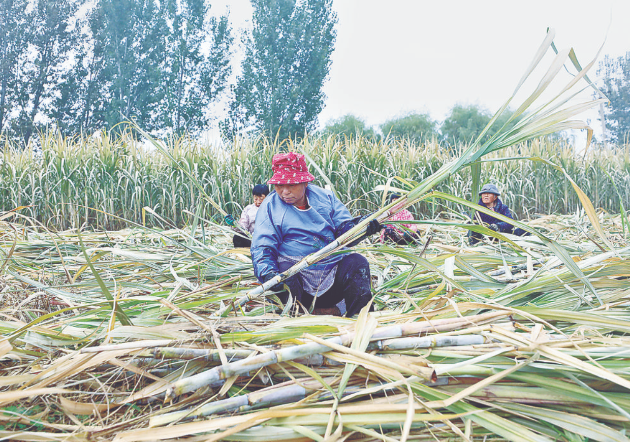 在固安县彭村乡小辛庄村的甘蔗种植地里,农户采收甘蔗。通讯员 陈放 摄