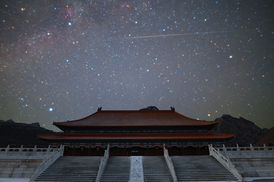 12月14日凌晨,一年一度的双子座流星雨如期而至。在河北省承德市丰宁满族自治县,摄影爱好者用镜头记录下多颗流星划过夜空的绚丽轨迹。