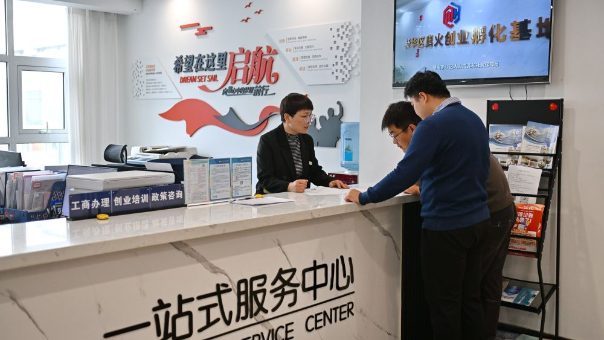 石家庄市新华区奥火创业孵化基地工作人员在为创业者办理业务 牟宇 摄