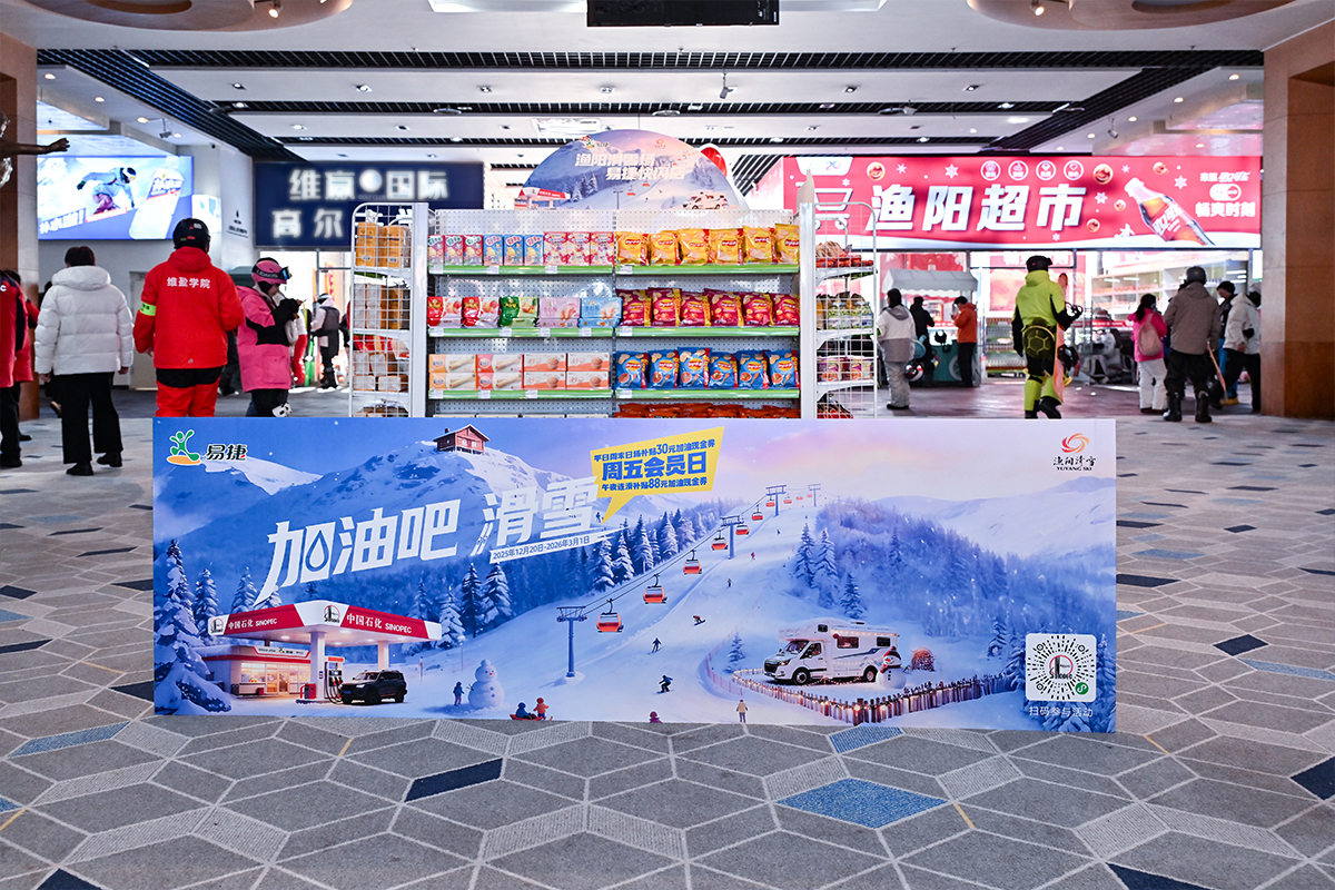 线上,依托“易捷加油”平台进行全域流量推广与便捷服务;线下,在渔阳滑雪场核心区域打造了独具特色的“易捷快闪店”,为会员提供专属购物福利、充值立减等优惠。此外,中国石化还将建设滑雪文旅主题的自驾游驿站,积极营造“周五加满油,周末自驾游”的轻松出行氛围。