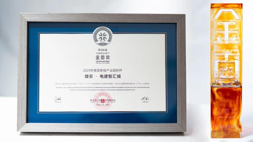 近日,在中国写字楼产业园发展论坛第22届年会上,雄安·电建智汇城获评行业权威奖项“金厦奖”,并被授予“2025年度国家级产业园标杆”称号。