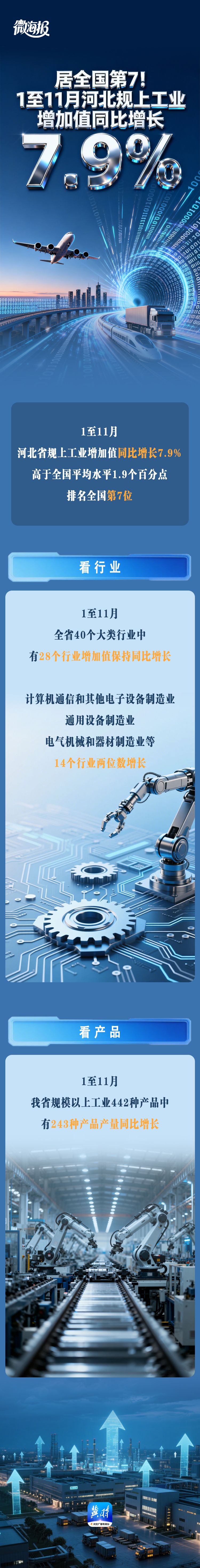 微海报丨居全国第7!1至11月河北规上工业增加值同比增长7.9%