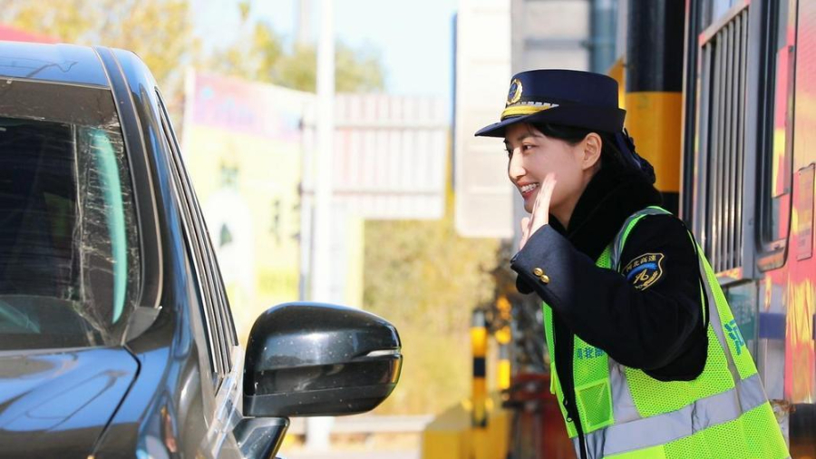 ↑在大广高速衡水收费站,工作人员在为司乘服务。(2025年5月26日 苗世强 摄)