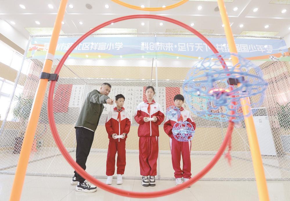 图为路北区祥富小学学生在教练的指导下进行无人机操控训练,把科技教育融入学生的兴趣爱好之中(资料片)。记者 吕光宇 摄